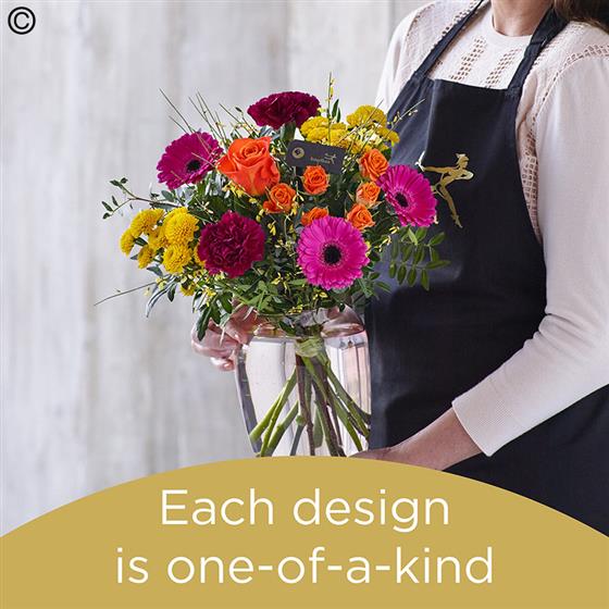 Each and every design is one-of-a-kind, created by an artisan florist using the freshest stems available on the day so, whilst your gift will look different to the one pictured, itโ€™ll still be just as lovely.