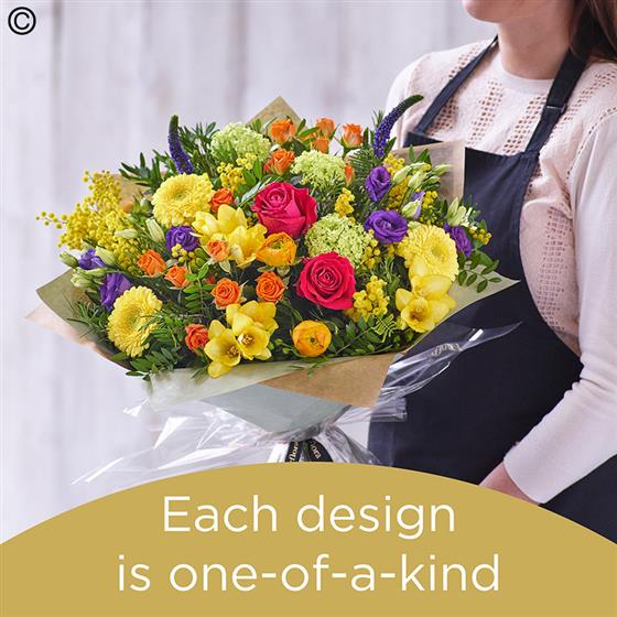 Each and every design is one-of-a-kind, created by an artisan florist using the freshest stems available on the day so, whilst your gift will look different to the one pictured, itโ€™ll still be just as lovely.